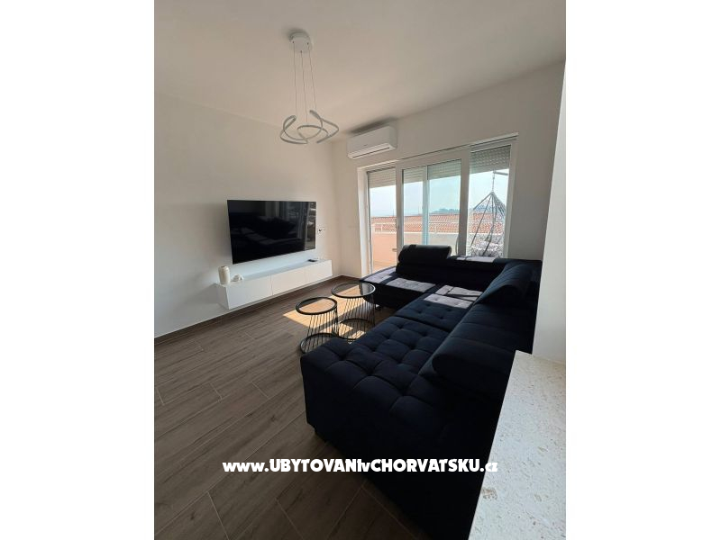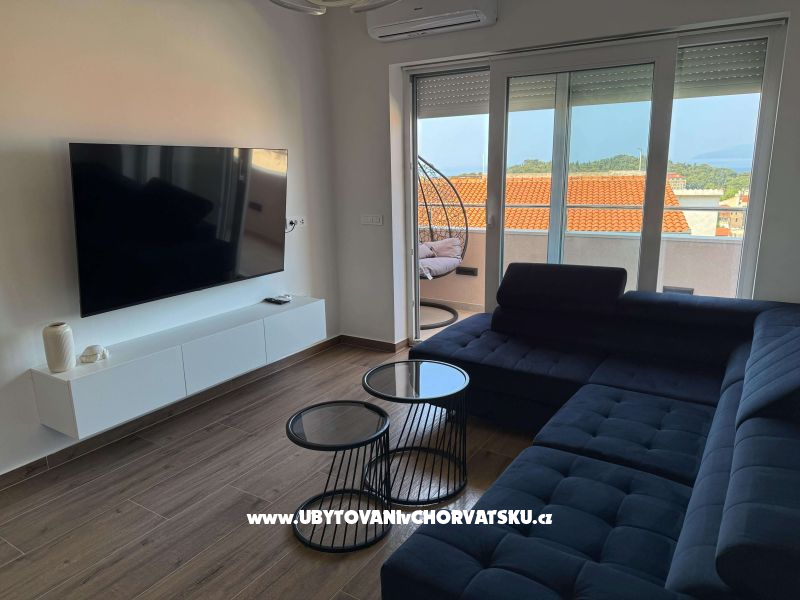 "Lana" - Apartament posiada jedną sypialnię z łóżkiem typu queen, łazienkę, salon z dużym kanapą, kuchnię i balkon z pięknym widokiem na morze i półwysep.
